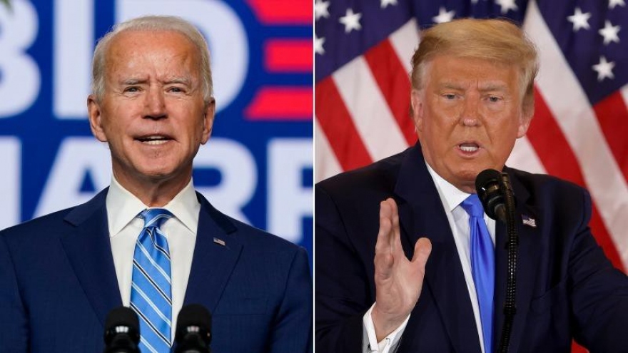 VOV.VN - Cuộc bầu cử Tổng thống Mỹ tiếp tục diễn ra gay cấn và lợi thế đang nghiêng hẳn sang ứng cử viên của đảng Dân chủ khi ông Joe Biden vượt lên dẫn trước tại hai bang chiến địa Pennsylvania và Georgia.