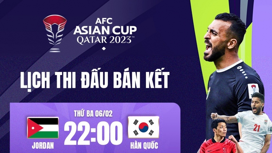 VOV.VN - Theo lịch thi đấu và trực tiếp Asian Cup 2023 hôm nay 6/2, người hâm mộ sẽ chứng kiến màn so tài của Hàn Quốc vs Jordan trong trận bán kết đầu tiên.