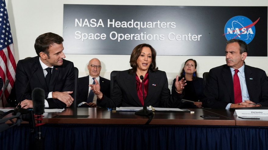 VOV.VN - Chiều 25/4, Phó Tổng thống Mỹ Kamala Harris đã đón tiếp Tổng thống Hàn Quốc Yoon Suk Yeol tại Trung tâm không gian Goddard của Cơ quan hàng không vũ trụ Mỹ (NASA).
