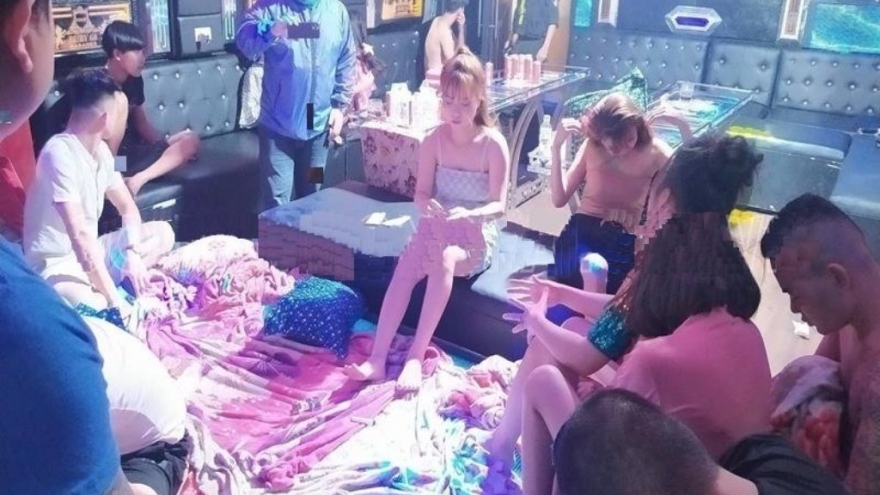 VOV.VN - Lực lượng chức năng TP. Ninh Bình, tỉnh Ninh Bình vừa mới phát hiện quán karaoke Olala phớt lờ lệnh cấm hoạt động đã mở cửa cho 27 người vào hát.