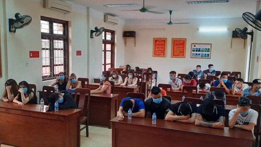 VOV.VN - Đêm 10/9, tổ công tác của Công an huyện Kim Thành, tỉnh Hải Dương tiến hành kiểm tra một số quán karaoke trên địa bàn huyện và phát hiện 27 đối tượng với ma túy.