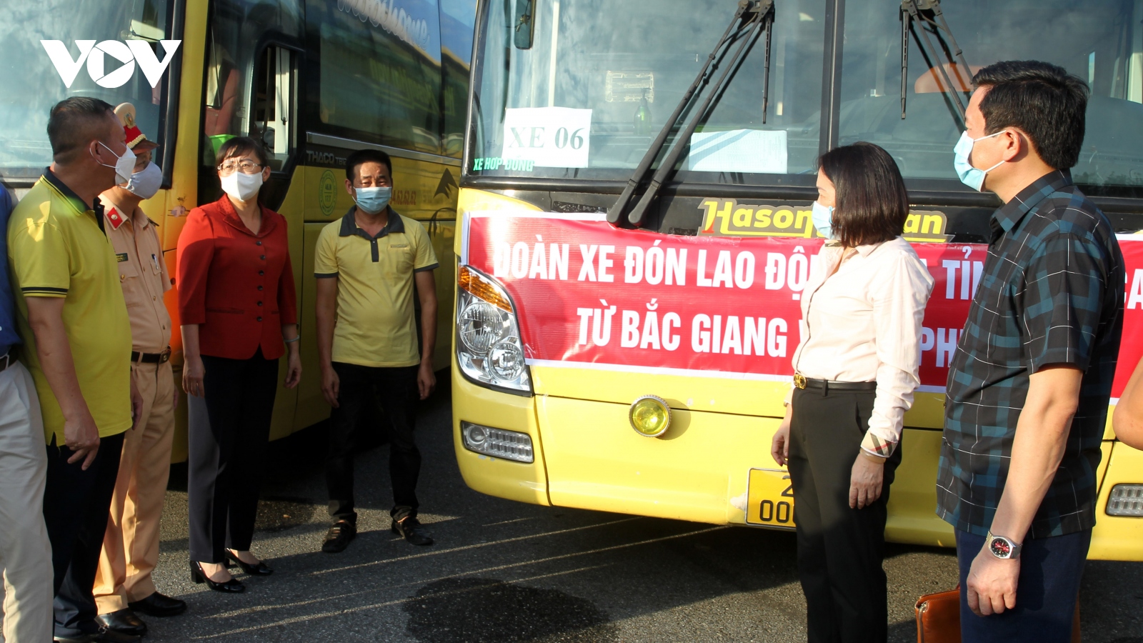 VOV.VN - Sáng 15/6, TP Hà Nội điều 20 chiếc xe buýt lên Bắc Giang để đón 286 công nhân đang làm việc tại các KCN trên địa bàn tỉnh Bắc Giang về Hà Nội.