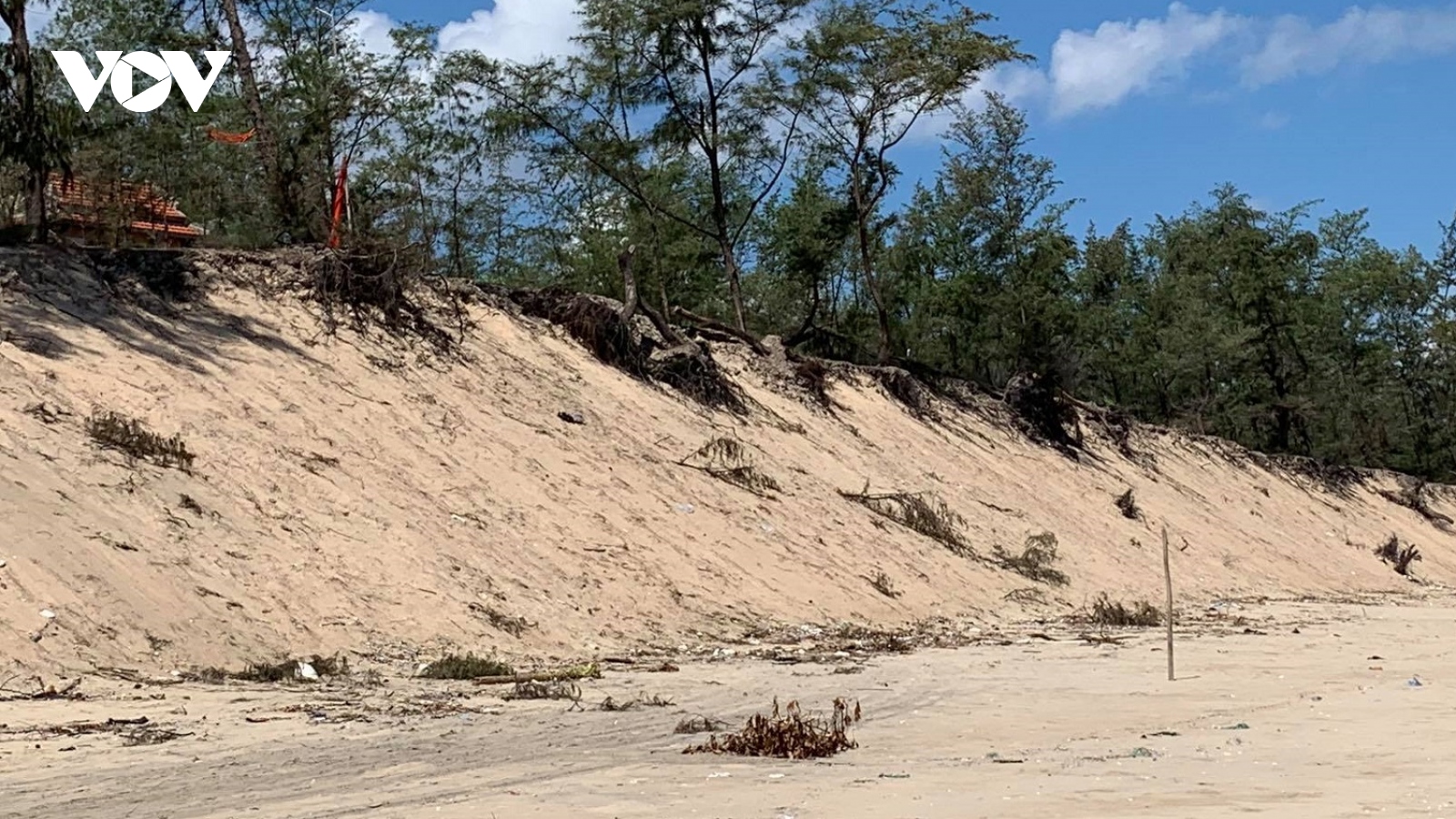 VOV.VN - Cơn bão số 5 vừa qua gây gió mạnh, kết hợp triều cường, sóng lớn đã làm bờ biển nhiều xã tại các huyện Phú Vang, Phú Lộc tiếp tục sạt lở nặng.