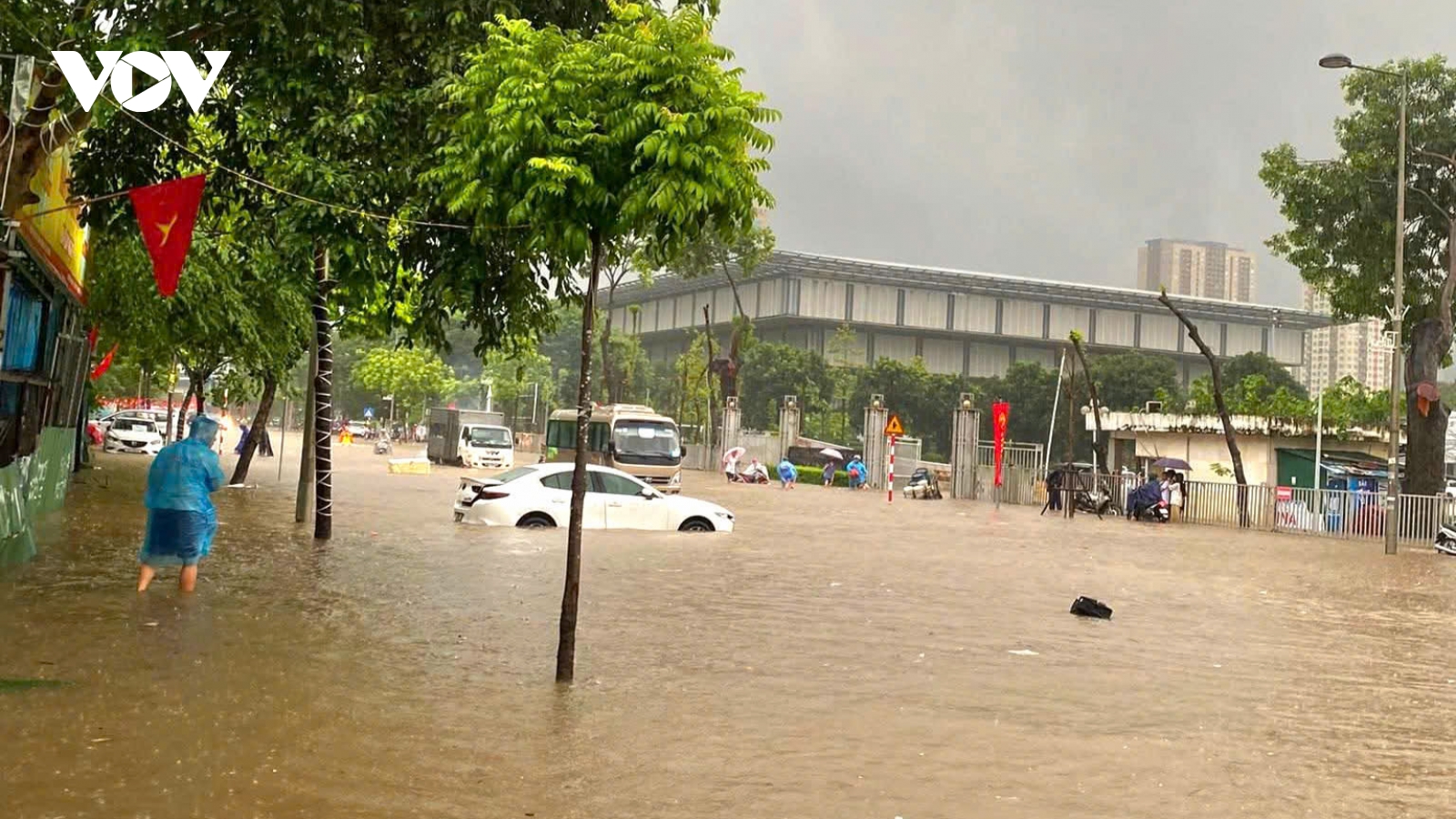 VOV.VN - Trận mưa lớn kéo dài khiến nhiều tuyến phố Hà Nội ngập nặng, giao thông tê liệt. Thế nhưng, tại chợ cóc trên đường Trần Quốc Vượng, phường Cầu Giấy, Hà Nội, các tiểu thương vẫn tất bật mưu sinh giữa dòng nước ngập.