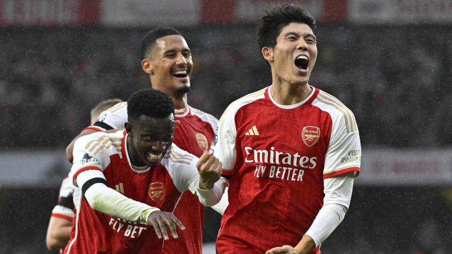 VOV.VN - Cú hat-trick của Nketiah cùng các pha làm bàn của Vieira và Tomiyasu giúp Arsenal thắng 5-0 trong cuộc tiếp đón Sheffield tại vòng 10 Ngoại hạng Anh 2023/2024.