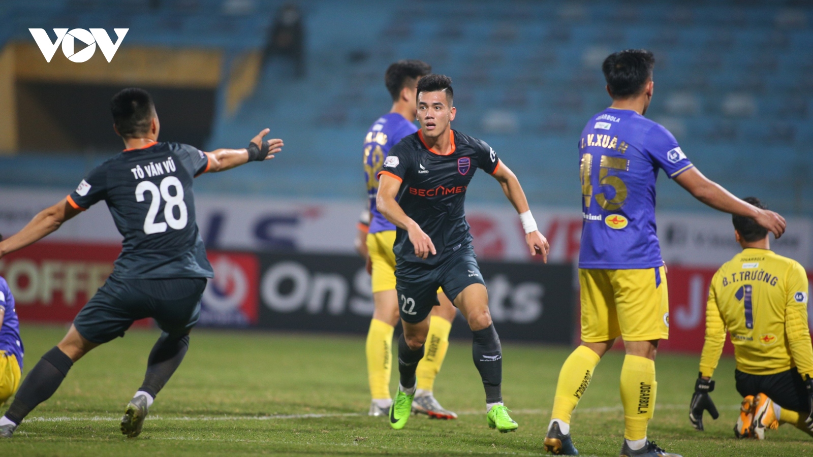 VOV.VN - Bàn thắng đầu tiên của tiền đạo Nguyễn Tiến Linh ở V-League 2021 giúp Bình Dương hoàn tất màn lội ngược dòng trong chuyến làm khách Hà Nội FC.