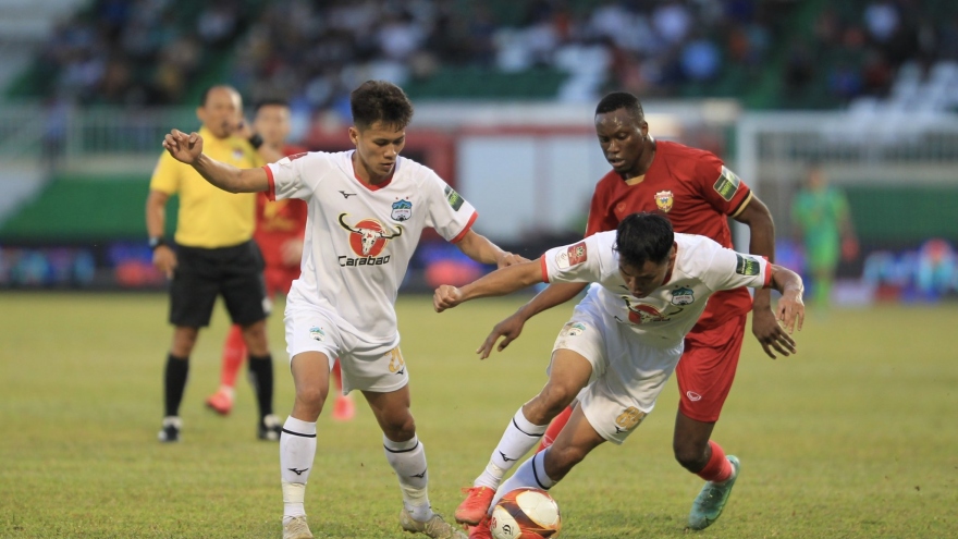 VOV.VN - Siêu phẩm của Minh Vương là không đủ để giúp HAGL thoát khỏi trận thua 1-2 trước SLNA ngay trên sân nhà Pleiku trong trận đấu thuộc vòng 19 V-League 2022.