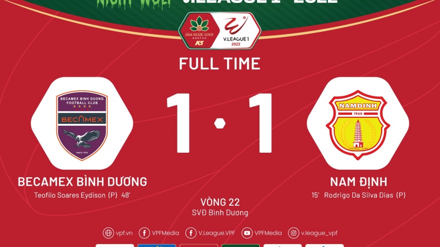 VOV.VN - Hà Nội FC thắng Viettel FC 1-0 để tiến sát chức vô địch, Bình Định níu kéo hy vọng khi đánh bại SLNA 1-0, Bình Dương lội ngược dòng hạ Thanh Hoá 4-2 trong loạt trận vòng 24 V-League 2022 ngày 9/11.