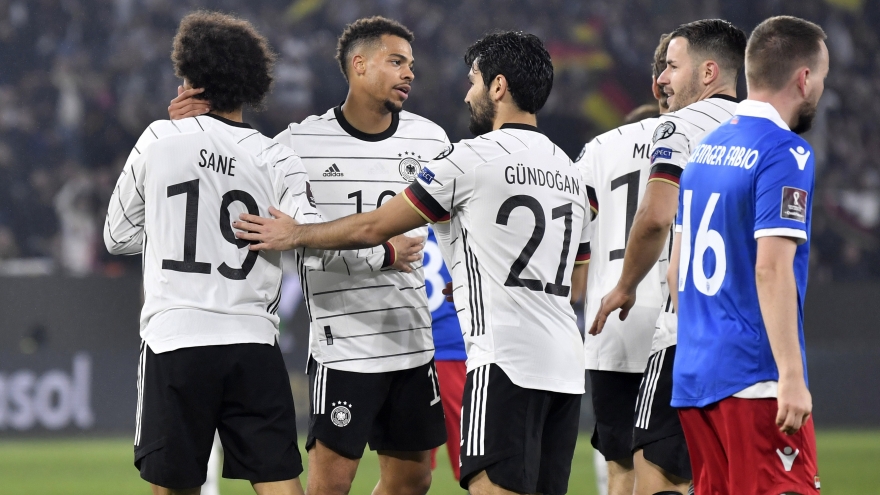 VOV.VN - Với tâm lý thoải mái sau khi chính thức giành vé dự VCK World Cup 2022, Đức đã tạo ra bữa tiệc bàn thắng và đè bẹp Liechtenstein với tỷ số 9-0.