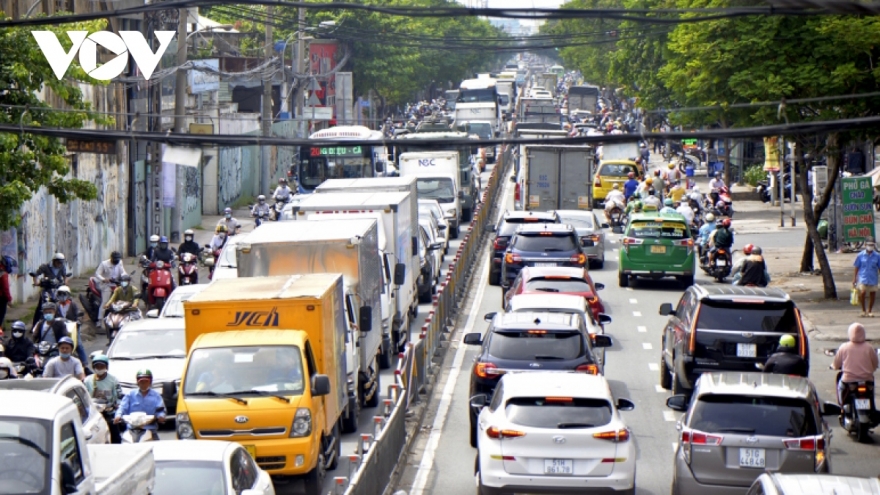 VOV.VN - Sở Giao thông Vận tải TP.HCM vừa có văn bản gửi các đơn vị liên quan khẩn trương triển khai giải pháp chống kẹt xe khu vực Cảng hàng không quốc tế Tân Sơn Nhất trong đợt cao điểm phục vụ Tết Nguyên đán 2024.