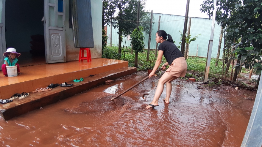 VOV.VN - Sau trận mưa chỉ hơn 1 tiếng vào trưa 4/10, nước đã tràn vào nhà, tàn phá nhiều tài sản và hoa màu của hơn chục hộ dân làng Ngol, phường Trà Bá.