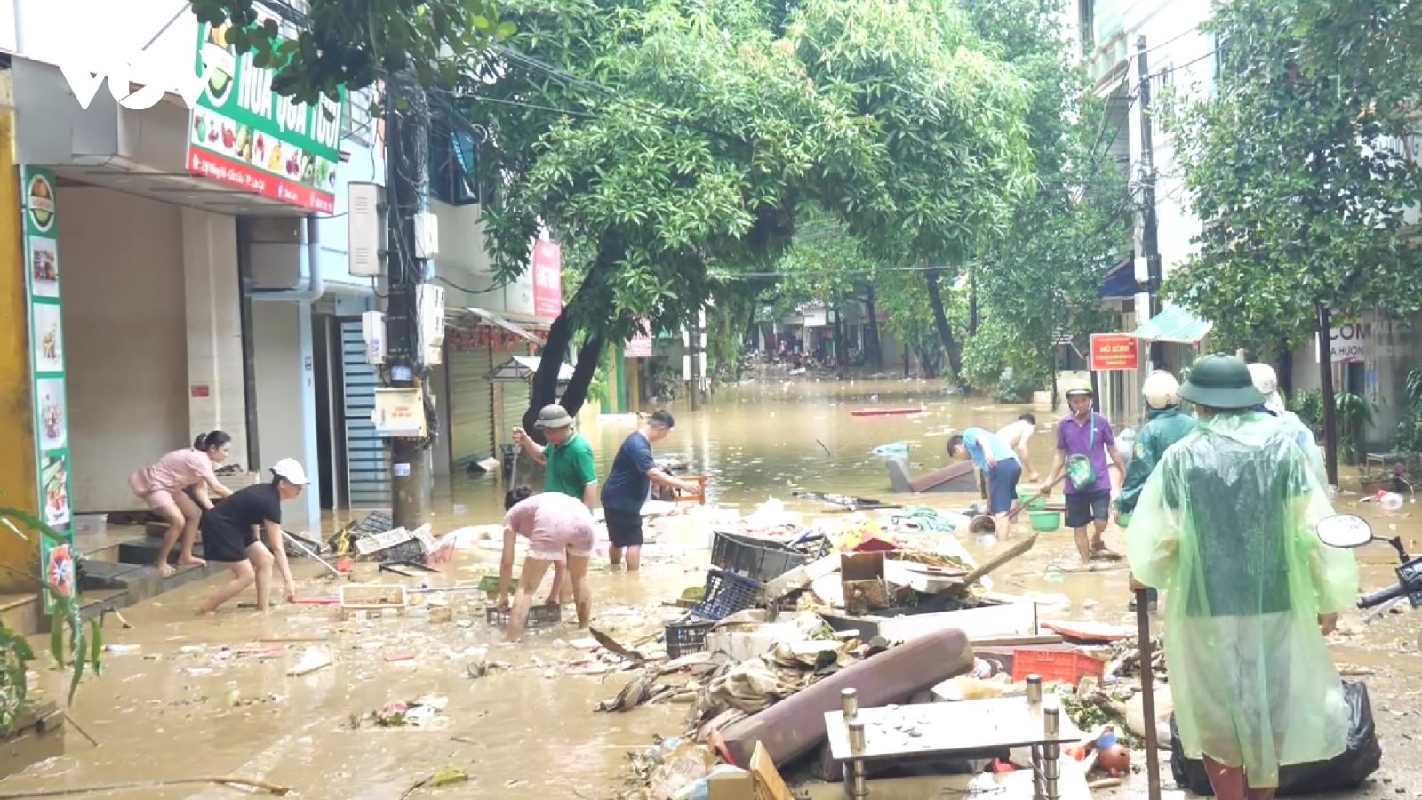 Công an Nghệ An giúp người dân khắc phục hậu quả mưa lũ