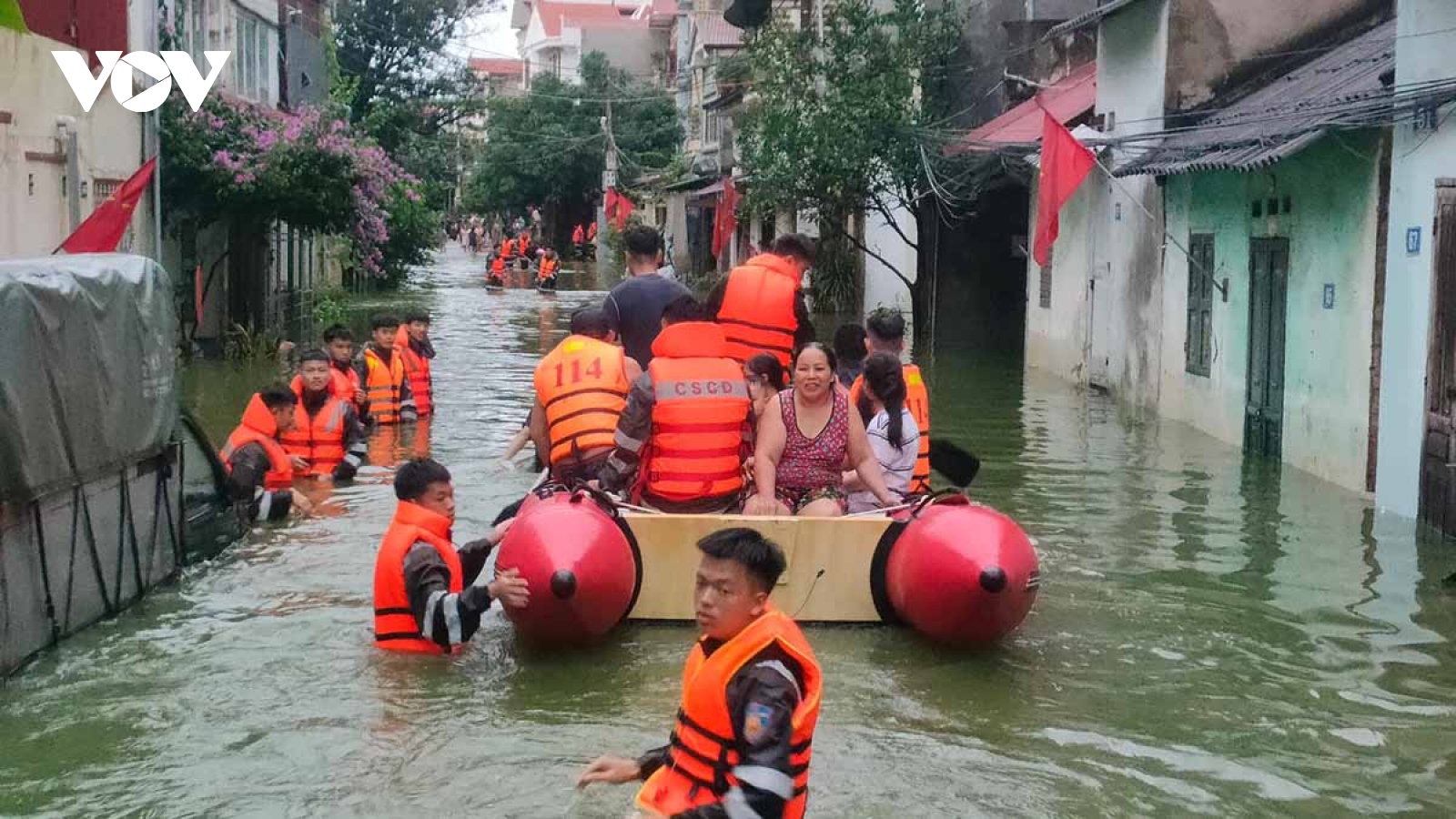 VOV.VN - Trên địa bàn huyện Quốc Oai, TP Hà Nội xảy ra mưa vừa, mưa to gây ngập úng, thiệt hại nhiều tài sản của bà con. Mưa lũ cũng khiến 1 người bị cuốn trôi.