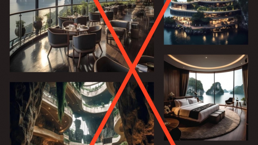 VOV.VN - UBND thành phố Hạ Long, tỉnh Quảng Ninh vừa có văn bản khẳng định hình ảnh khách sạn được xây dựng trên núi giữa di sản thiên nhiên thế giới Vịnh Hạ Long được lan truyền trên mạng xã hội những ngày qua là không có thật.