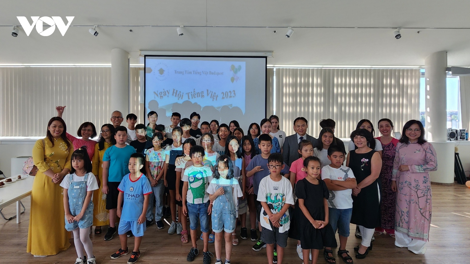 VOV.VN - Ngày hội Tiếng Việt và Lễ khai giảng năm học 2023-2024 có sự tham dự của đại điện cán bộ Đại sứ quán Việt Nam tại Hungary, các thầy cô giáo, phụ huynh và gần 60 học sinh, con em cộng đồng người Việt đang sinh sống, học tập ở Hungary.