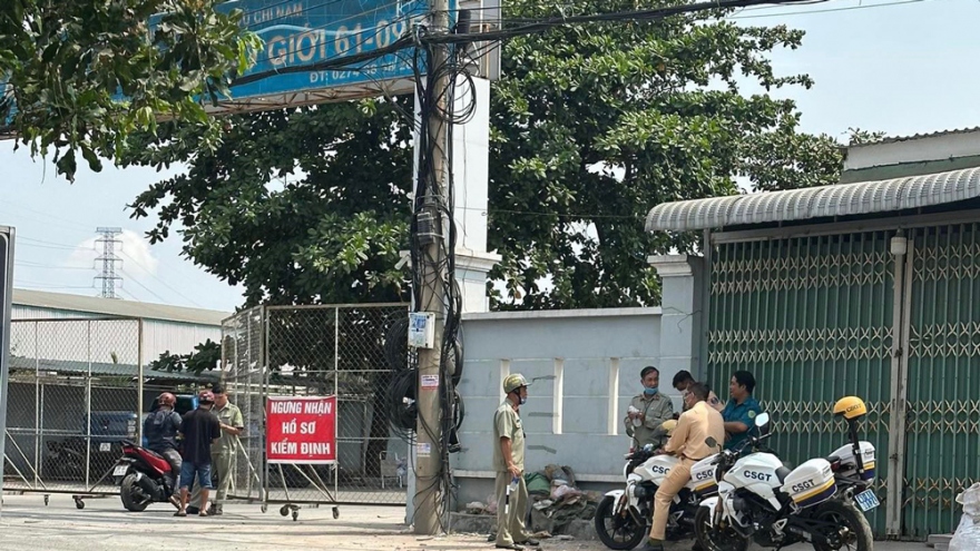 VOV.VN - Trưa 1/4, Công an quận Bình Tân phối hợp với một số đơn vị nghiệp vụ Công an TP.HCM kiểm tra Trung tâm đăng kiểm xe cơ giới 50-01S tại phường Tân Tạo A.