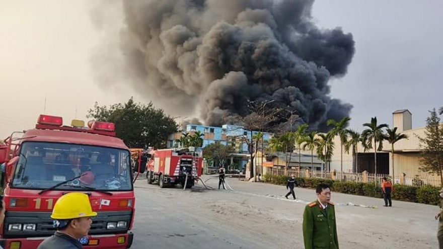 VOV.VN - Một vụ cháy lớn xảy ra tại Công ty Cổ phần Tập đoàn Hồng Lạc, thuộc khu vực Cụm công nghiệp Ba Hàng (phường Nam Đồng, TP Hải Dương, tỉnh Hải Dương) vào chiều tối 28/2, thiêu rụi kho bãi cho thuê của công ty.