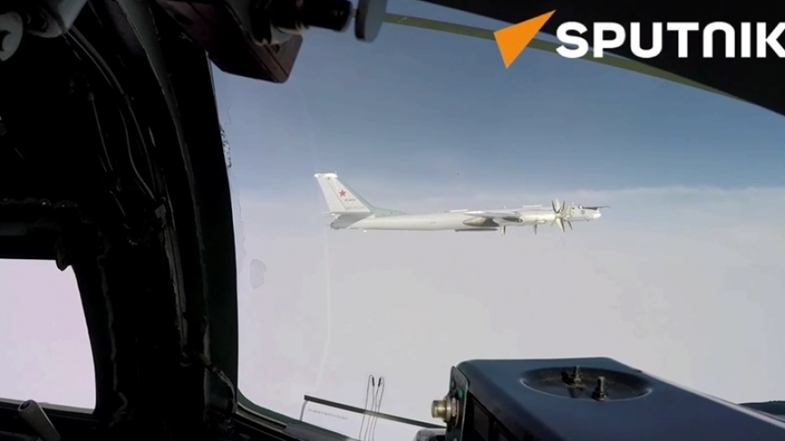 VOV.VN - Tu-95MS là máy bay ném bom chiến lược hạng nặng 4 động cơ. Clip sau ghi cảnh máy bay này của không quân Nga đang thực hiện tuần tra và tiếp nhận nhiên liệu trên không.