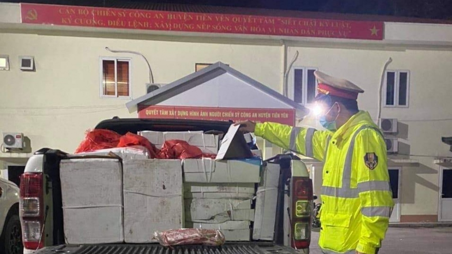 VOV.VN - Trong ngày 9/3, đội tuần tra kiểm soát giao thông đường bộ cao tốc số 2 (Cục CSGT) liên tiếp phát hiện 2 xe tải chở theo số lượng lớn nầm lợn đông lạnh đang bốc mùi hôi thối, không rõ nguồn gốc xuất xứ đi tiêu thụ.