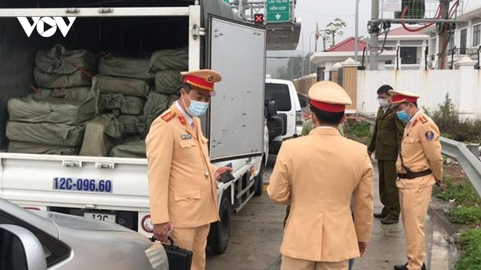 VOV.VN - Lực lượng CSGT phối hợp với đội quản lý thị trường đã kiểm tra phát hiện xe tải dùng biển số giả chở theo 2,5 tấn nầm lợn không rõ nguồn gốc xuất xứ từ biên giới về tiêu thụ.