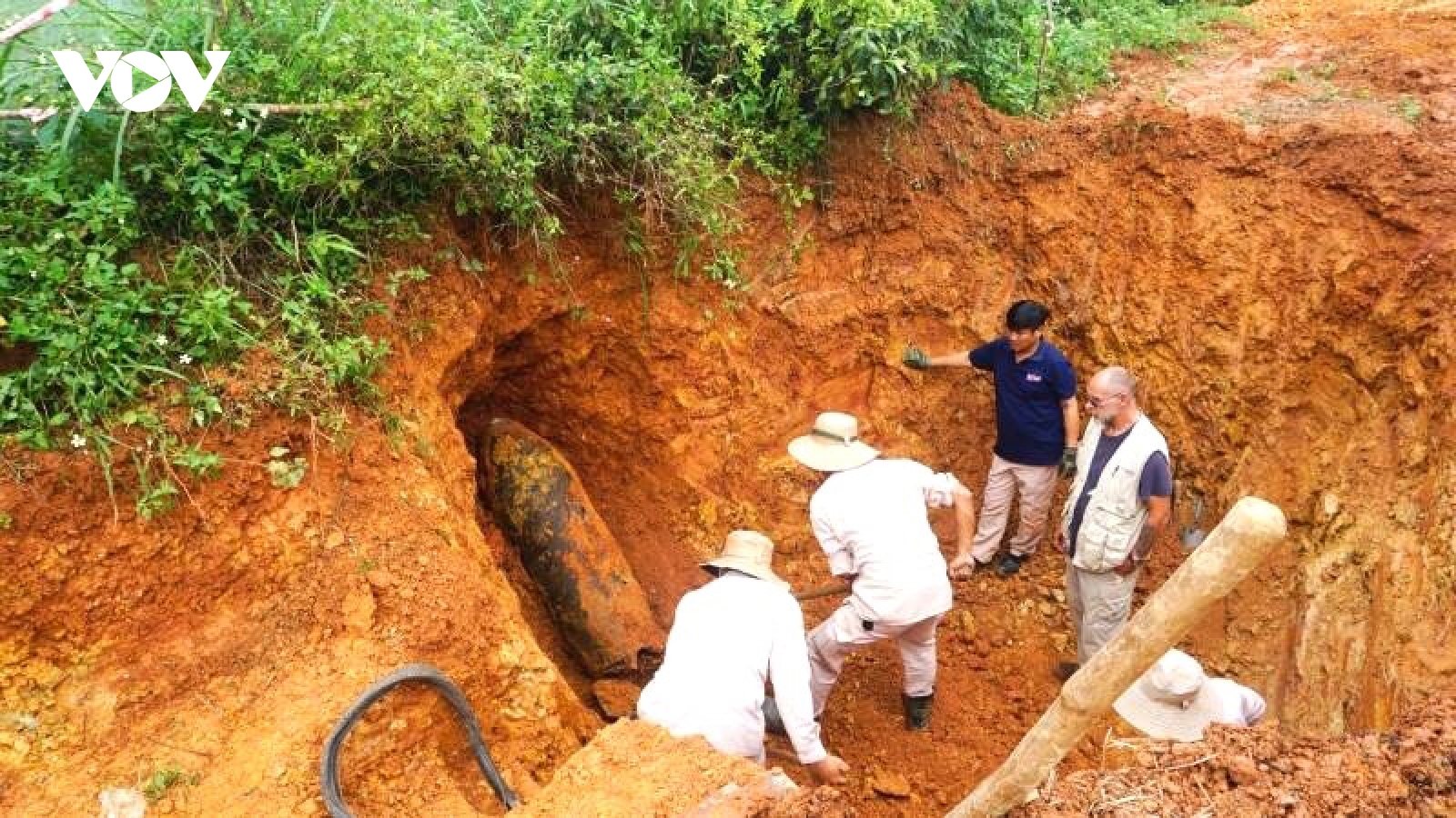 VOV.VN - Từ ngày 27/11 đến 30/11, người dân tại tỉnh Quảng Bình phát hiện 3 quả bom lớn trọng lượng từ 100kg - 300kg nằm gần trường học, khu dân cư. Đội xử lý bom mìn lưu động của MAG tại Quảng Bình đã xử lý an toàn 3 quả bom lớn này.