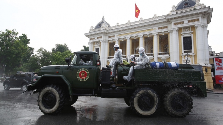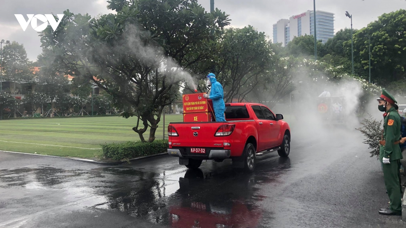 VOV.VN - Sáng 23/7, Bộ Tư lệnh TP.HCM phối hợp với Lữ đoàn phòng hóa 87 và Tiểu đoàn phòng hóa 38 bắt đầu phun khử khuẩn toàn bộ huyện Bình Chánh và TP Thủ Đức.