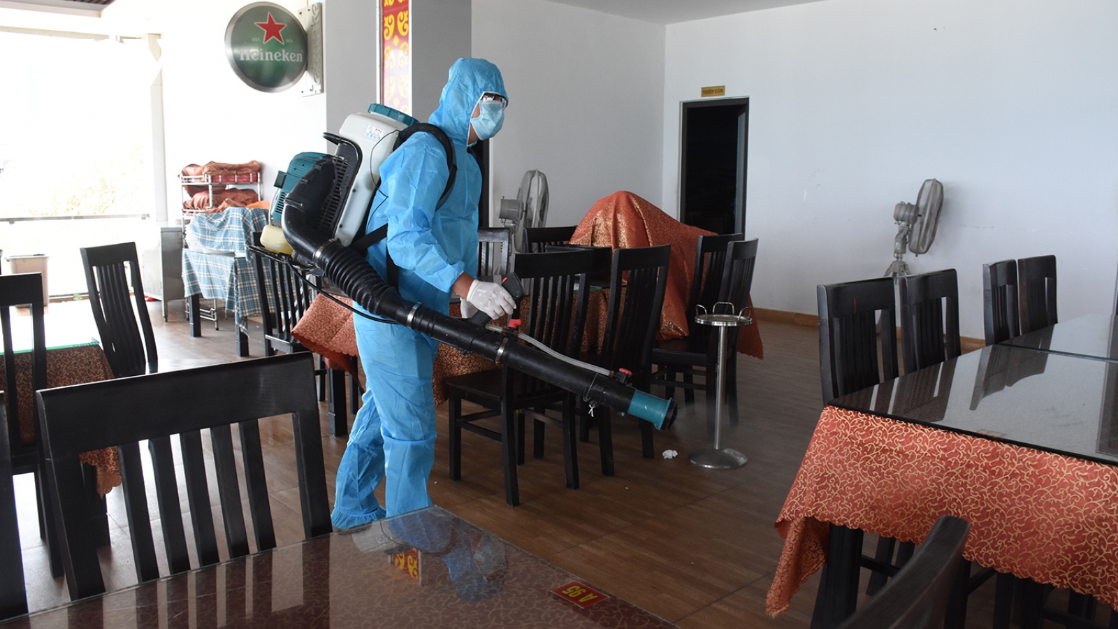 VOV.VN - Đà Nẵng đã tiến hành phun khử khuẩn Nhà hàng For You biển, lô 1, 2 ,3 đường Võ Nguyên Giáp, biển Mỹ Khê và nhà hàng Biển Lớn, lô 18 cũng ở đường Võ Nguyên Giáp.