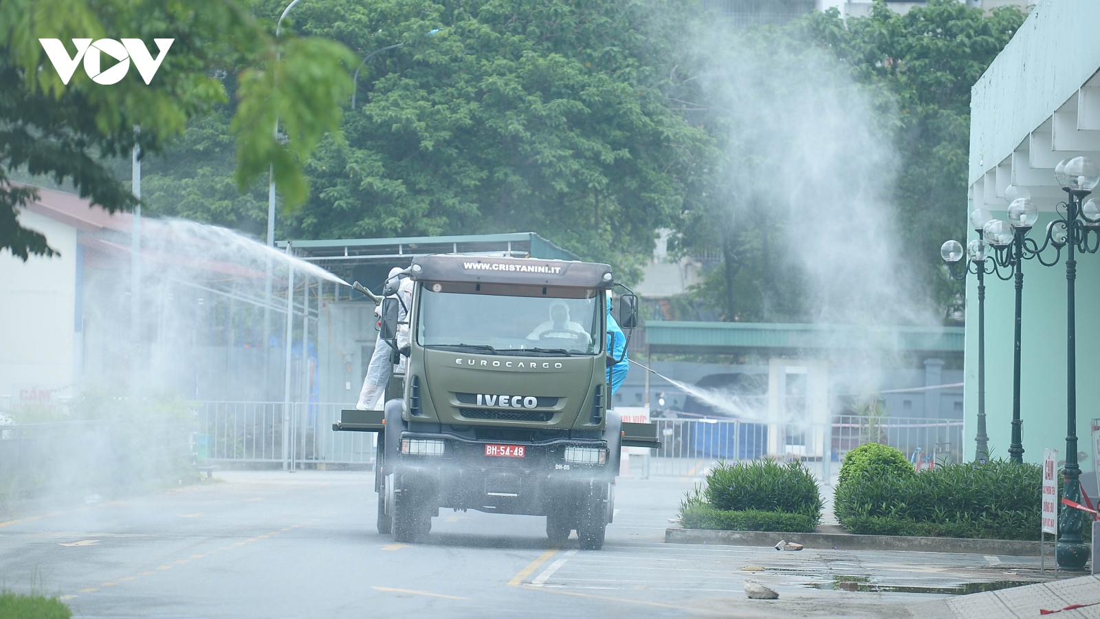 VOV.VN - Chiều 6/5, Binh chủng hoá học - trung tâm ứng cứu sự cố hoá học - Bộ Quốc phòng, Bộ Tư lệnh Thủ đô tiến hành phun khử khuẩn Bệnh viện Bệnh Nhiệt đới Trung ương cơ sở 2 tại Kim Chung, Đông Anh, Hà Nội.