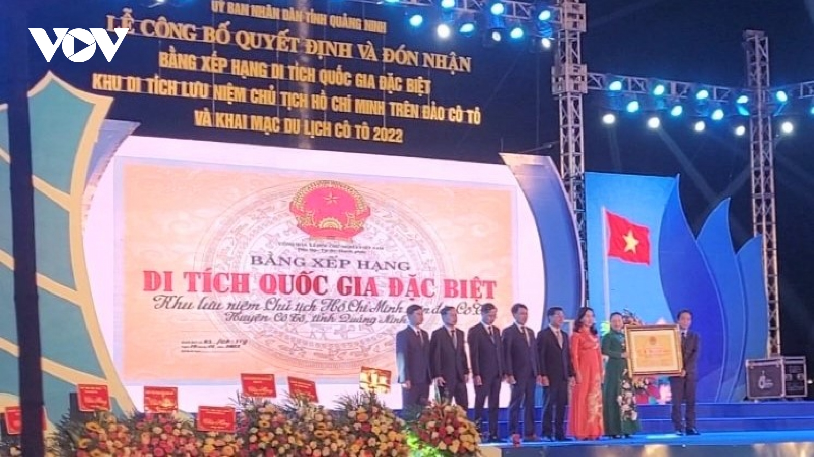 VOV.VN - Tối nay (7/5), tại huyện đảo Cô Tô, tỉnh Quảng Ninh diễn ra lễ công bố Quyết định và đón nhận Bằng xếp hạng di tích quốc gia đặc biệt Khu lưu niệm Chủ tịch Hồ Chí Minh trên đảo Cô Tô.