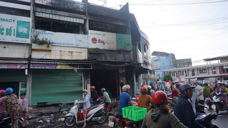 VOV.VN - Đêm qua 14/6, tại thị trấn Buôn Trấp, huyện Krông Ana, tỉnh Đắk Lắk xảy ra vụ cháy rụi hai ki ốt bán các thiết bị dân dụng, thiệt hại khoảng 2 tỷ đồng.
