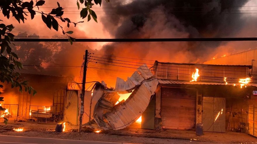 VOV.VN - Sáng 22/2, một dãy ki ốt, ở khu phố Hòa Lân 2, phường Thuận Giao, thành phố Thuận An xảy ra hỏa hoạn. Lực lượng chức năng địa phương vẫn đang nỗ lực dập lửa.