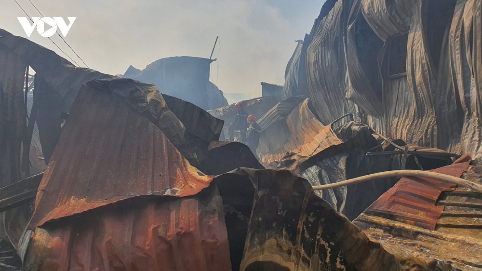 VOV.VN - Thống kê ban đầu của lực lượng chức năng tỉnh Bình Dương, khu đất xảy ra hỏa hoạn khoảng 1.000m2, diện tích cháy 450m2 gồm 5 ki ốt và cửa hàng đồ gỗ.