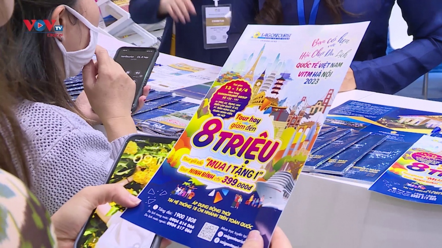 VOV.VN - Hội chợ du lịch quốc tế VITM Hà Nội 2023 đã chính thức khai mạc. Tại đây các doanh nghiệp du lịch đã đồng loạt đưa ra nhiều chương trình kích cầu, giảm giá từ hàng nghìn vé máy bay ưu đãi cho tới tour du lịch giảm giá đến 30%.
