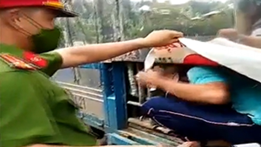 VOV.VN - Ngày 20/9, Công an tỉnh Bình Phước phối hợp với Ban chỉ đạo phòng chống Covid-19 huyện Phú Riềng kiểm tra, phát hiện xe tải chở 7 người trốn trong thùng xe để “thông chốt” kiểm soát dịch.