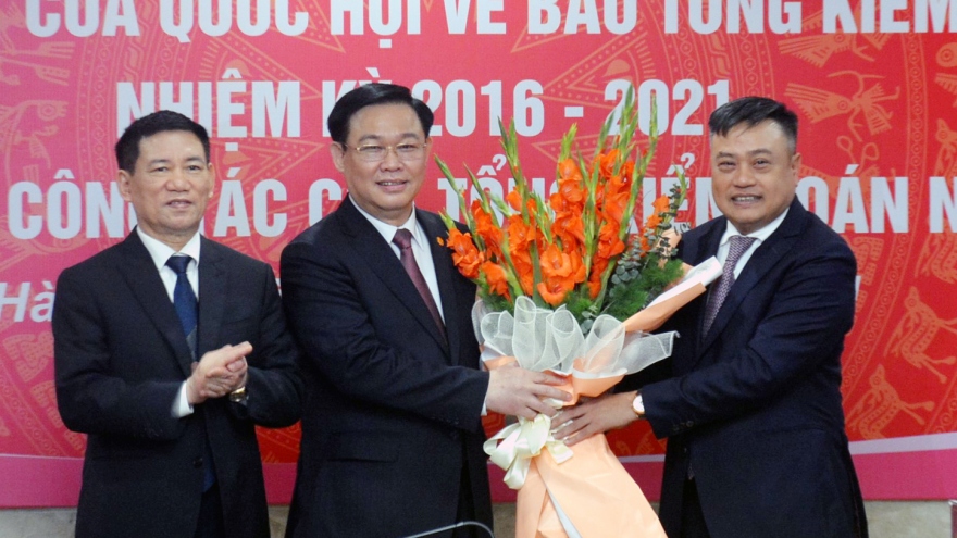 VOV.VN - Kiểm toán Nhà nước vừa tổ chức lễ công bố và trao Nghị quyết của Ủy ban Thường vụ Quốc hội về công tác cán bộ. Lần đầu tiên, Kiểm toán Nhà nước có lãnh đạo nữ.