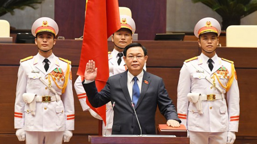 VOV.VN - Sau khi được Quốc hội khoá XV tiếp tục bầu giữ chức vụ Chủ tịch Quốc hội nhiệm kỳ mới, ông Vương Đình Huệ tuyên thệ trung thành với Tổ quốc, với Nhân dân, với Hiến pháp.
