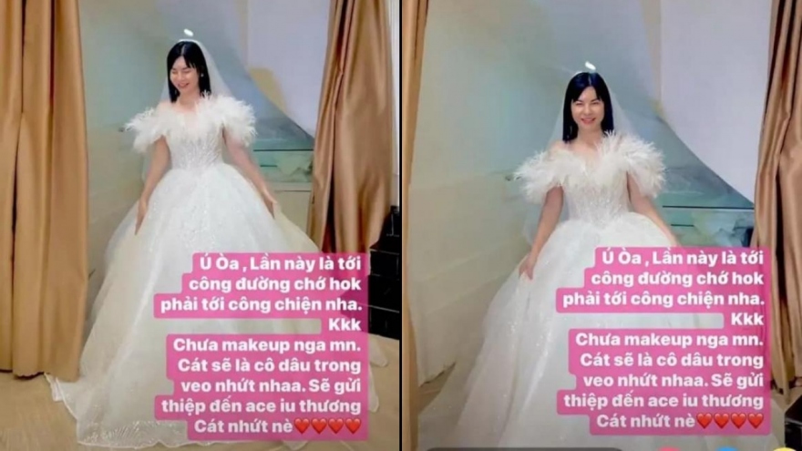 VOV.VN - Cát Phượng vừa đăng video đi thử váy cưới làm dân tình phải bán tín bán nghi. Nữ nghệ sĩ vui vẻ trong chiếc đầm cưới màu trắng, đội khăn voan, mặt mộc rạng rỡ bước ra từ phòng thử đồ.