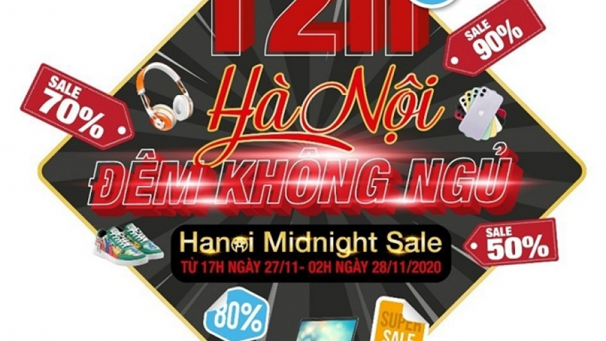VOV.VN - Sự kiện Hà Nội đêm không ngủ - HaNoi Midnight Sale diễn ra từ 17h00 ngày 26/11 đến 02h00 ngày 27/11/2021 tại Hà Nội thu hút khoảng 200 doanh nghiệp, trung tâm thương mại, siêu thị... tham gia với gần 3.000 chương trình khuyến mại.
