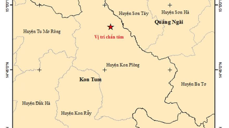VOV.VN - Một trận động đất có độ lớn 2.7 xảy ra tại vị trí có tọa độ (14.820 độ vĩ Bắc, 108.277 độ kinh Đông), độ sâu chấn tiêu khoảng 8.1 km. Động đất xảy ra tại khu vực huyện Kon Plong, tỉnh Kon Tum.