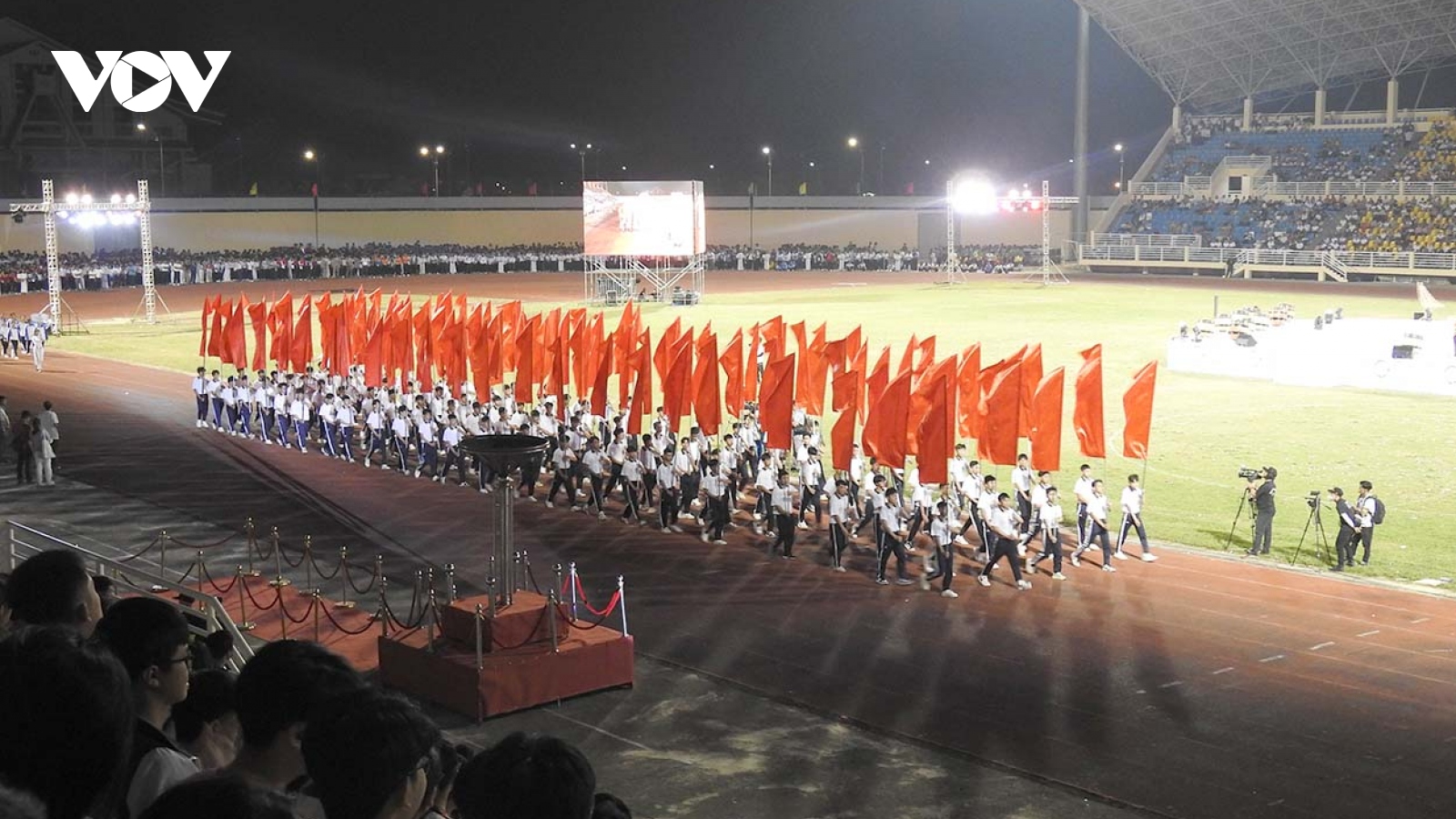 VOV.VN - Chào mừng kỷ niệm 49 năm ngày giải phóng tỉnh Kon Tum (16/3/1975- 16/3/2024), tối 16/3, tại Sân vận động tỉnh Kon Tum diễn ra Lễ khai mạc Hội khỏe Phù Đổng tỉnh Kon Tum lần thứ IX năm 2024 với chủ đề: "Tuổi trẻ học đường Kon Tum Khát vọng - Vươn tầm và Hội nhập".