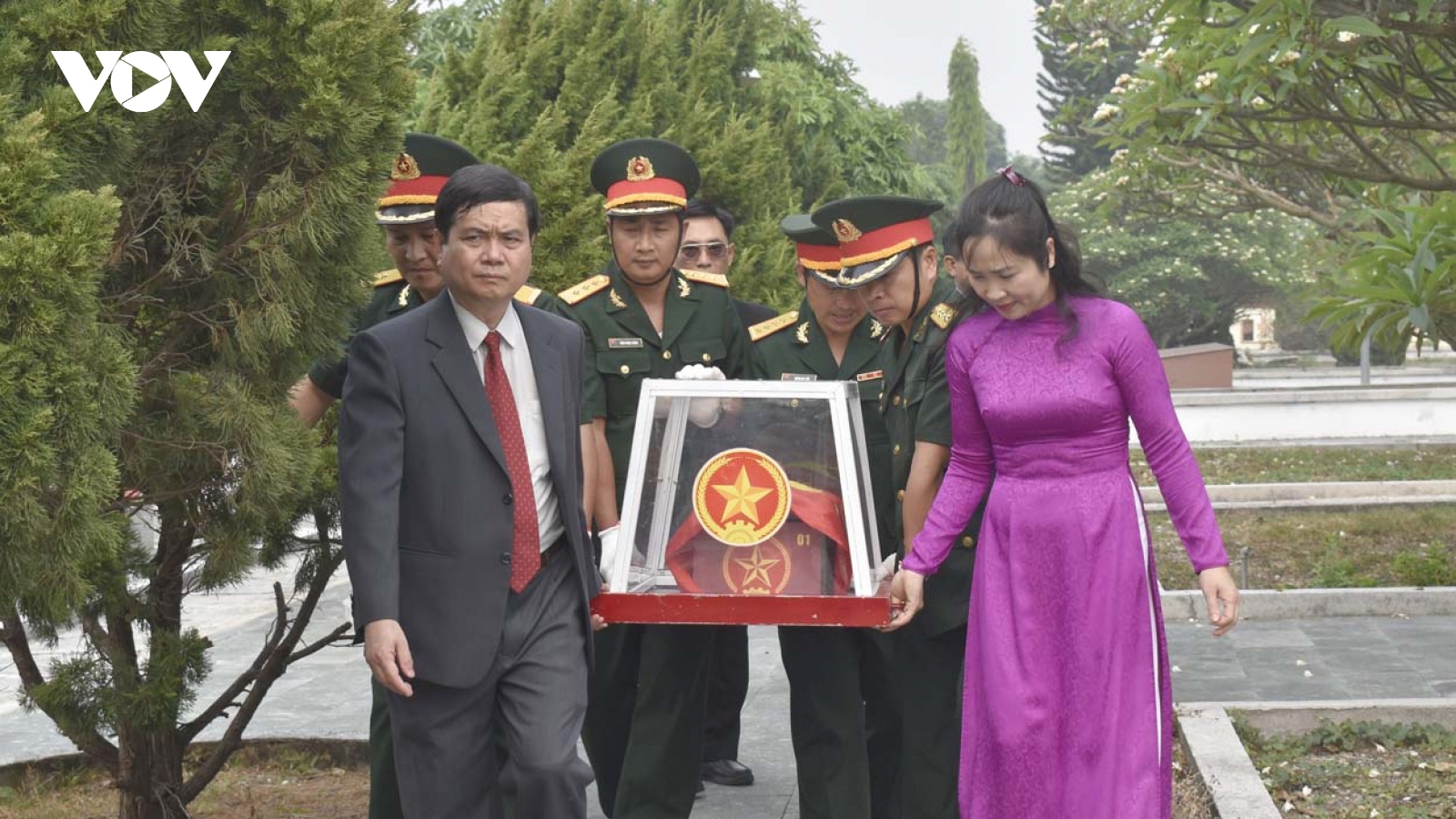 VOV.VN - Sáng nay (14/4), tại Nghĩa trang Liệt sĩ tỉnh Kon Tum, Thành ủy, HĐND, UBND, UBMTTQ Việt Nam thành phố Kon Tum tổ chức Lễ viếng, truy điệu và an táng 8 hài cốt liệt sỹ hy sinh trong cuộc kháng chiến chống Mỹ cứu nước giai đoạn 1972 được quy tập trên địa bàn 2 phường Duy Tân và Ngô Mây.