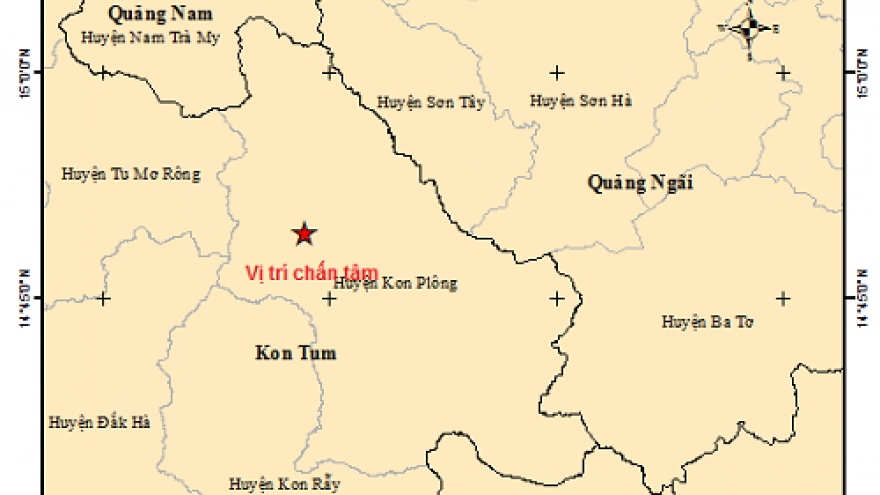VOV.VN - Theo thông tin từ Trung tâm báo tin động đất và cảnh báo sóng thần, Viện Vật lý Địa cầu, Viện Hàn lâm Khoa học và công nghệ Việt Nam, vào lúc 12h54 phút hôm nay, một trận động đất 4,5 độ richter đã xảy ra tại khu vực huyện Kon Plông, tỉnh Kon Tum.