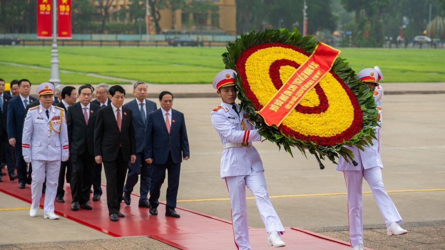 VOV.VN - Sáng 20/5, trước phiên khai mạc Kỳ họp thứ 7, các vị lãnh đạo Đảng, Nhà nước cùng đại biểu Quốc hội đến đặt vòng hoa và vào Lăng viếng Chủ tịch Hồ Chí Minh.