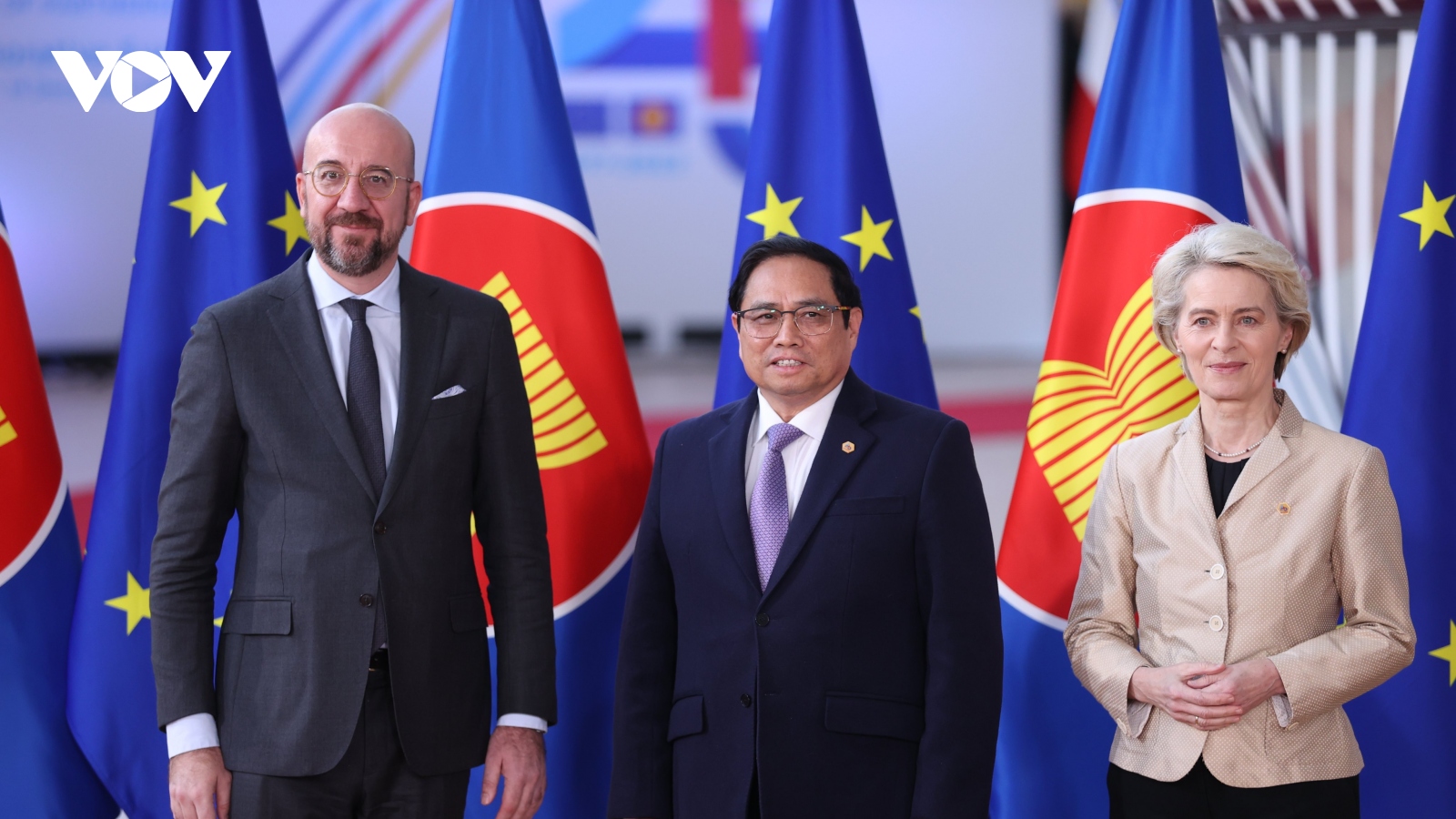 VOV.VN - Ngày 14/12 (theo giờ địa phương), tại Brussels, Vương quốc Bỉ, Thủ tướng Chính phủ Phạm Minh Chính đã cùng Lãnh đạo ASEAN và EU dự Hội nghị Cấp cao kỷ niệm 45 năm quan hệ ASEAN-EU.