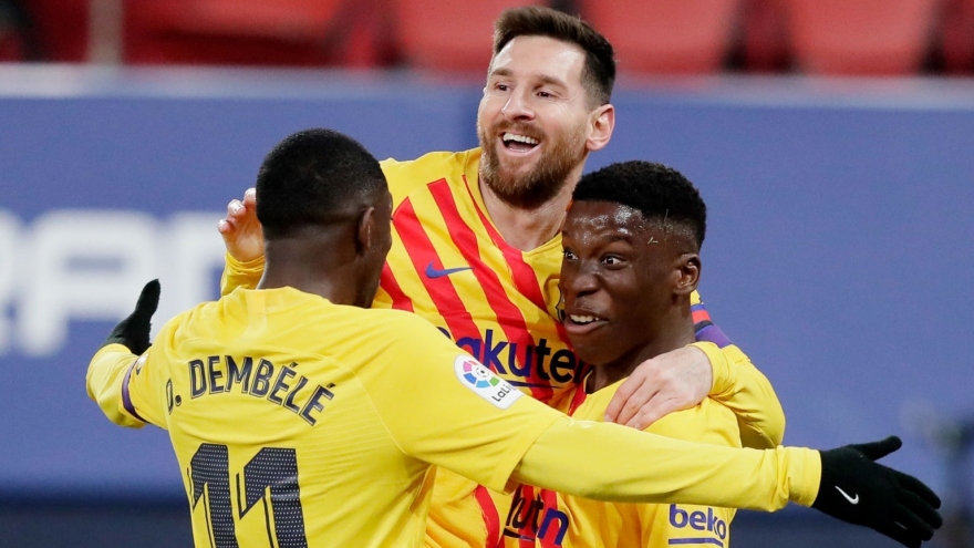 VOV.VN - Messi tỏa sáng với cú đúp kiến tạo giúp Barca giành chiến thắng 2-0 trước Osasuna tại vòng 26 La Liga 2020/2021 để gây áp lực lên Atletico Madrid trong cuộc đua vô địch.