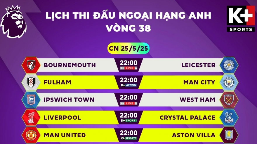 VOV.VN - Lịch thi đấu và trực tiếp bóng đá hôm nay 24/5 rạng sáng 25/5, người hâm mộ sẽ hướng sự chú ý của mình tới các trận đấu ở La Liga, Ngoại hạng Anh và Serie A.