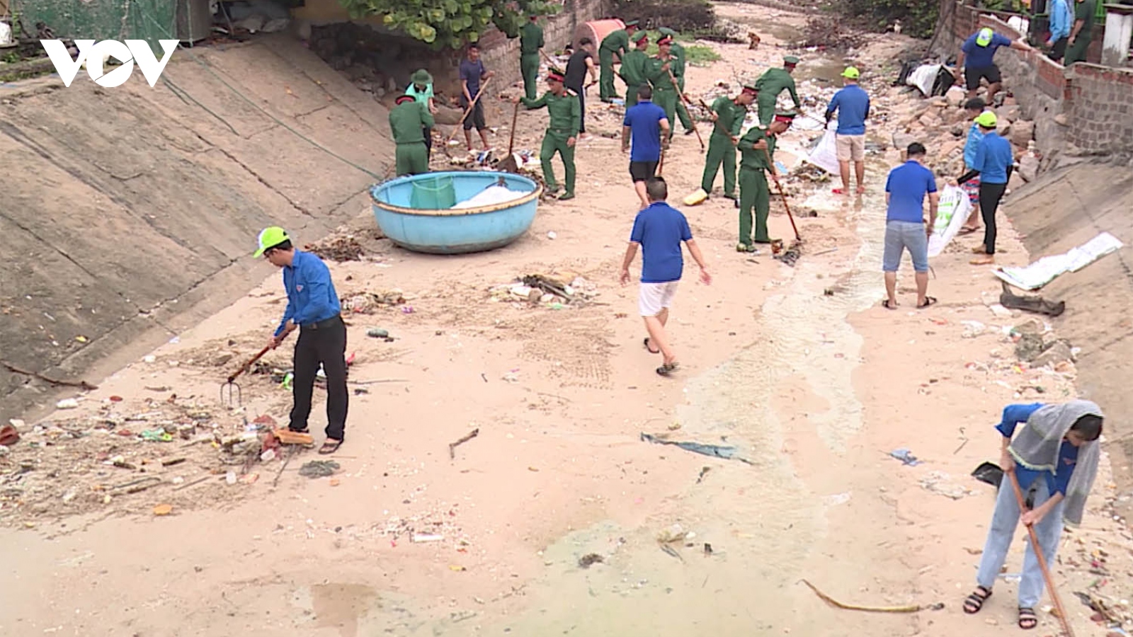 VOV.VN - Hơn 150 cán bộ, chiến sĩ Biên phòng thành phố Đà Nẵng, đoàn viên thanh niên, học sinh của quận Liên Chiểu dọn vệ sinh, thu gom rác tại khu vực bãi biển Kim Liên.