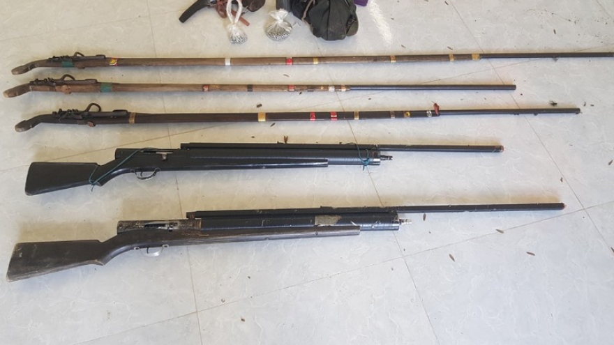 VOV.VN - Qua thông tin tố giác tội phạm của nhân dân, Điện Biên đã phát hiện và thu giữ nhiều súng tự chế của một nhóm người nghi khai thác lâm sản trái phép.