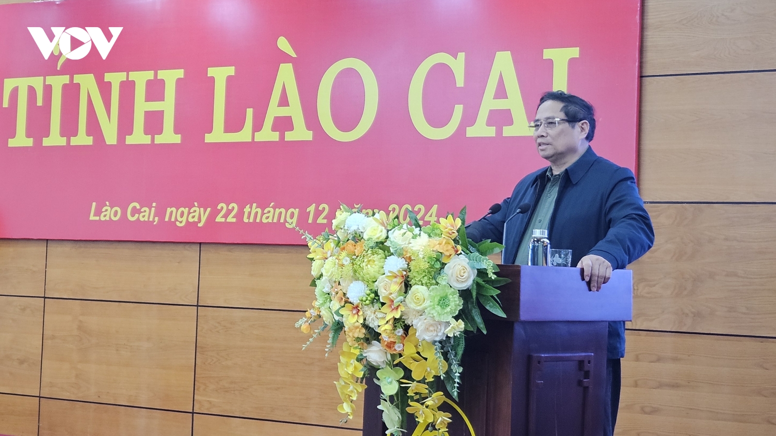 VOV.VN - Chiều tối 22/12, trong chương trình công tác tại Lào Cai, Thủ tướng Phạm Minh Chính và đoàn công tác làm việc với Ban Thường vụ Tỉnh ủy Lào Cai, đánh giá tình hình, kết quả triển khai nhiệm vụ phát triển kinh tế-xã hội năm 2024 và phương hướng, nhiệm vụ trong thời gian tới.