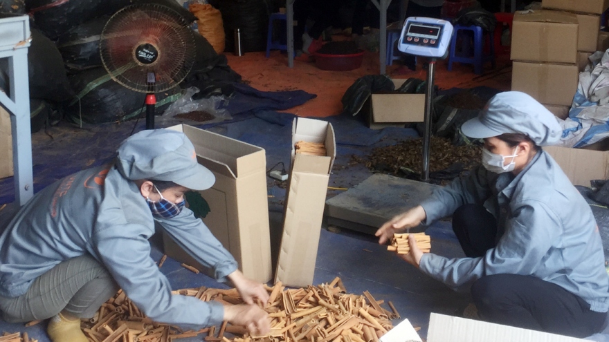 VOV.VN - Các sản phẩm quế của Hợp tác xã Tâm Hợi, tỉnh Lào Cai hiện xuất khẩu sang thị trường 9 nước, gồm: Singapore, Ấn Độ, Thái Lan, Malaysia, Bangladesh, Qatar, Lebanon, Israel, Thổ Nhĩ Kỳ. Doanh thu một năm từ xuất khẩu quế đạt khoảng 80 – 90 tỷ đồng.